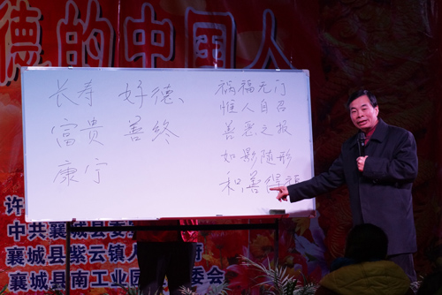 1月21日-1月22日, 由我公司主辦、河南省滎陽孝文化促進(jìn)會協(xié)辦的“弘揚優(yōu)秀傳統(tǒng)文化公益講座”在我公司大禮堂成功舉辦。 公司300多名職工、職工家屬及來自不同村鎮(zhèn)的傳統(tǒng)文化愛好者等共計700余人參加了本次講座。 本次講座為期兩天,分別邀請了河南省孝文化促進(jìn)會副會長馮崇章、韓逸云教授、傳統(tǒng)文化老師張正三位專家學(xué)者。他們分別講述了傳統(tǒng)文化中倫理道德、因果輪回及五福人生。 講座通過老師授課、同學(xué)分享、學(xué)員間互相交流等形式,在很大程度上提高了學(xué)員們對傳統(tǒng)文化有了更深刻的認(rèn)識和理解: 倫理道德讓我們明白:通過消除“怨恨惱怒煩”,恢復(fù)“仁義禮智信”,內(nèi)省懺悔,改正過錯,改善人際關(guān)系,通過盡孝道、丈夫道、媳婦道、姑娘道,讓家庭和諧,通過勸導(dǎo)使患者心結(jié)打開,平和心態(tài),調(diào)整心性。善待父母,善待家人,家庭是樹,老人是根,子女是果,只有孝敬父母子女才會興旺。 因果輪回告訴我們:凡做一件事、說一句話、甚至動一個念頭都是種因,隨其善惡的性質(zhì)和份量,都有恰如其分的結(jié)果在后邊;遲早總會由自己承擔(dān)相應(yīng)的結(jié)果。正如牛頓第三定律:作用力與反作用力大小相等、方向相反、作用在同一條直線上,正所謂聰明用盡,不如本分做人! 如何獲得五福人生:長壽、富貴、康寧、好德、善終。此“五德”是一切快樂和幸福的源泉,是一切好運和福氣的根本。但快樂、幸福、好運、福氣及一切享受的東西,都像是樹上的果,摘完了就需要我們及時、不斷的再施肥、再培植。 愿天常生好人,愿人常行好事,愿五福常臨好人,愿好人常享五福 |